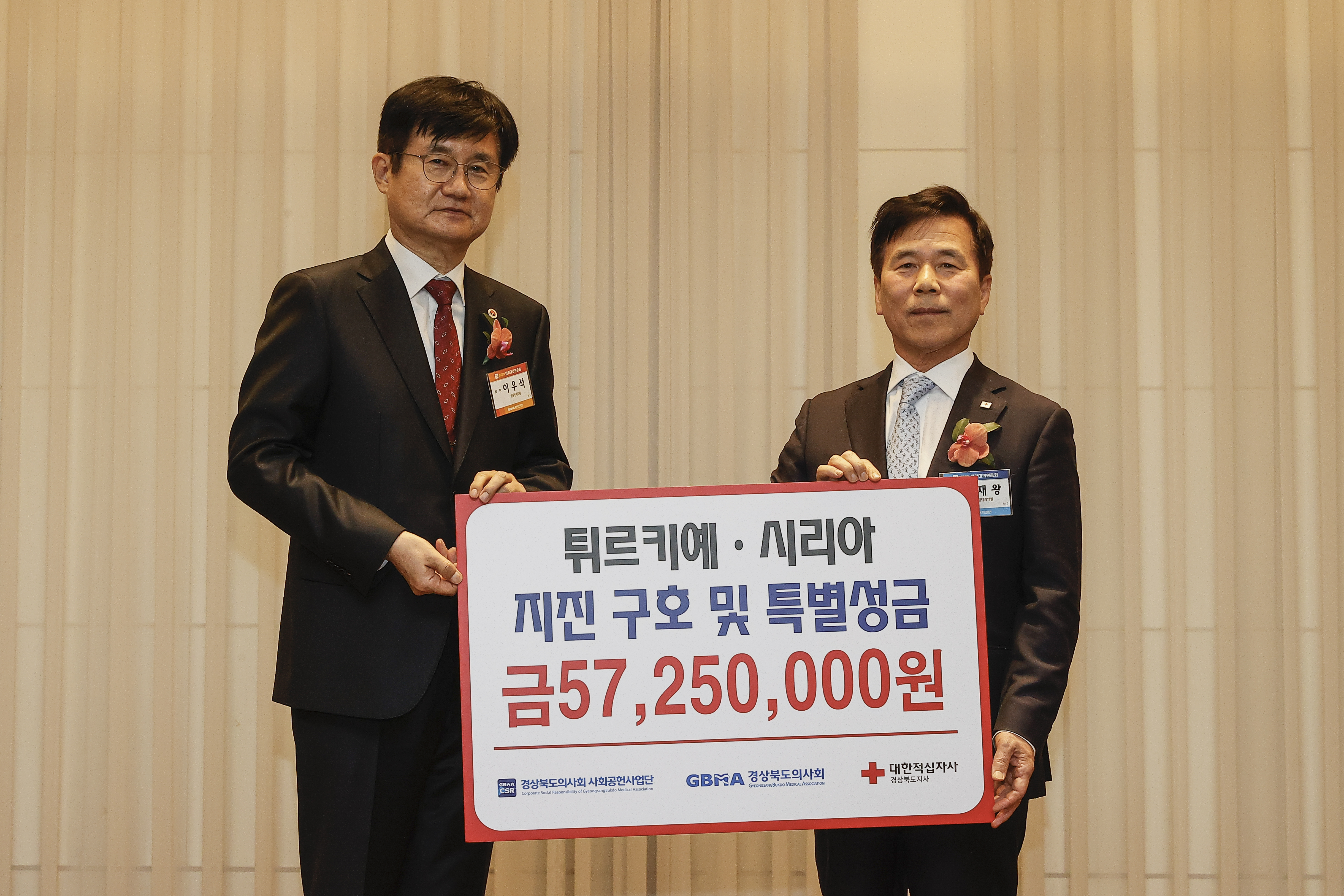 °æ»óºÏµµÀÇ»çȸ ¹× ( »ç ) °æ»óºÏµµÀÇ»çȸ »çȸ°øÇå»ç¾÷´Ü ( ȸÀå ¹× ÀÌ»çÀå À̿켮 ) ÀÌ º»È¸ ȸ¿øÀ» ´ë»óÀ¸·Î Æ¢¸£Å°¿¹ ¡¤ ½Ã¸®¾Æ ÁöÁø ±¸È£ ¼º±ÝÀ» ¸ð±ÝÇÏ¿© Áö³ 3 ¿ù 25 ÀÏ ( Åä ) ´ëÇÑÀû½ÊÀÚ»ç °æºÏÁö»ç¸¦ ÅëÇØ 5,725 ¸¸¿øÀ» Àü´ÞÇß´Ù .