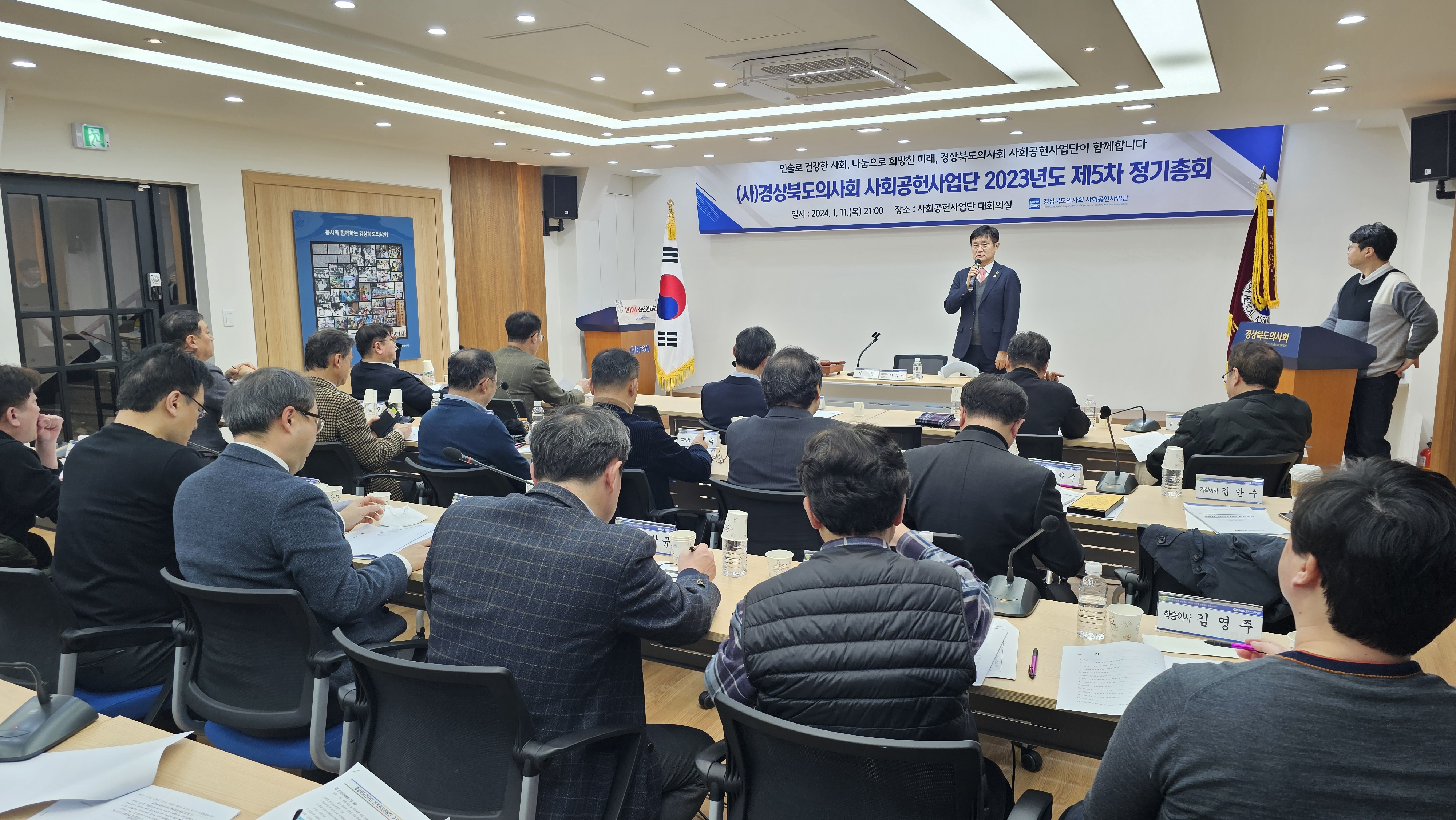 ( »ç ) °æ»óºÏµµÀÇ»çȸ »çȸ°øÇå»ç¾÷´Ü ( ´ëÇ¥ÀÌ»ç À̿켮 ) Àº Áö³ 1 ¿ù 11 ÀÏ ( ¸ñ ) ¿ÀÈÄ 9 ½Ã , »çȸ°øÇå»ç¾÷´Ü ´ëȸÀǽǿ¡¼ À̿켮 ´ëÇ¥À̻縦 ºñ·ÔÇÑ ÀÌ»çÁøÀ» Æ÷ÇÔÇÑ ´ëÀÇ¿ø 21 ¸í ( ÀçÀû 28 ¸í ) ÀÌ Âü¼®ÇÑ °¡¿îµ¥ 2023 ³âµµ Á¦ 5 Â÷ Á¤±âÃÑȸ¸¦ ¿°í 2023 ³âµµ ÁÖ¿ä»ç¾÷ ¹× ȸ°è °á»ê°ú 2024 ³âµµ »ç¾÷°èȹ ( ¾È ) ¹× ¿¹»ê ( ¾È ) À» ½ÉÀÇ , Åë°ú½ÃÄ×´Ù .