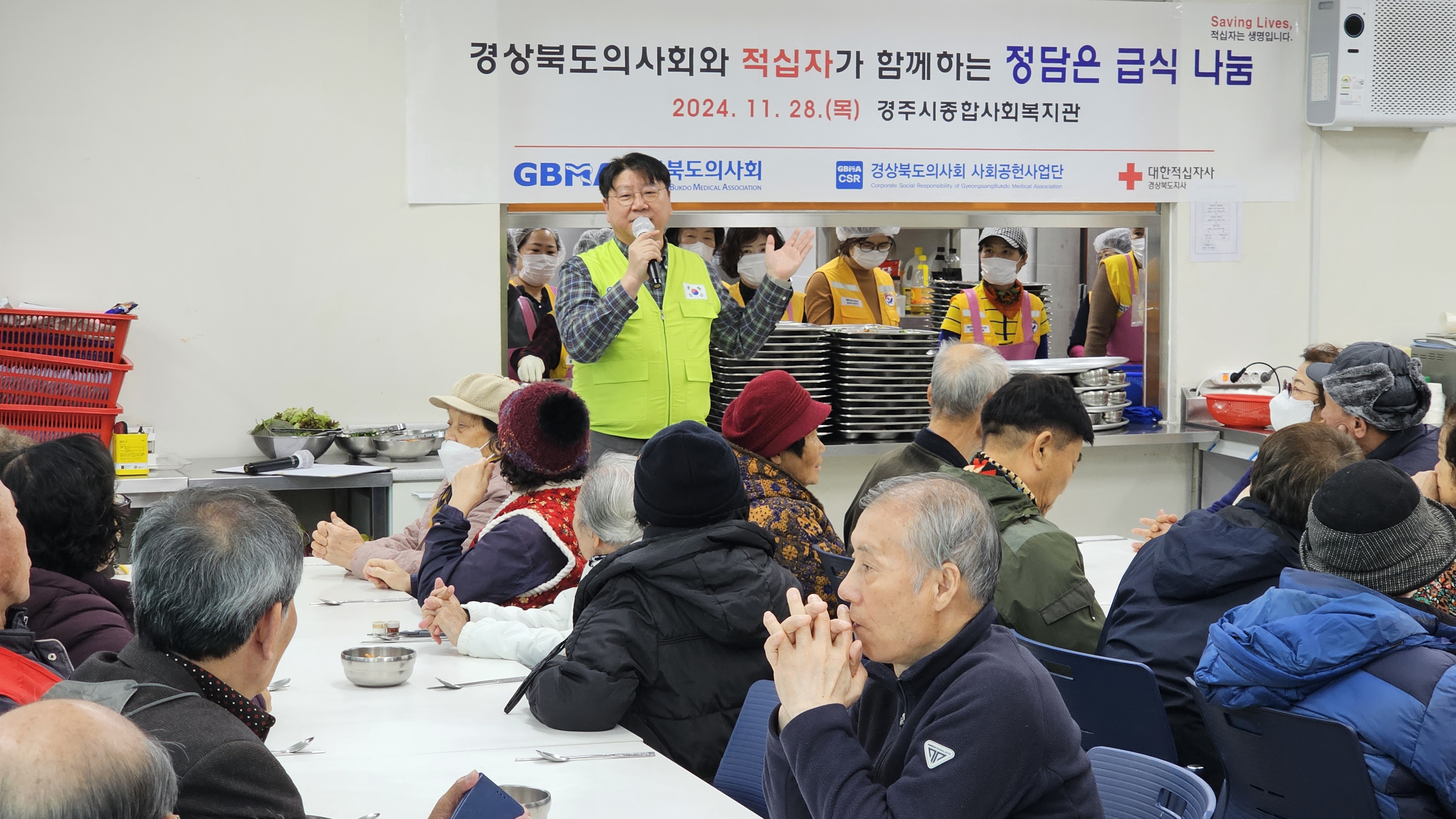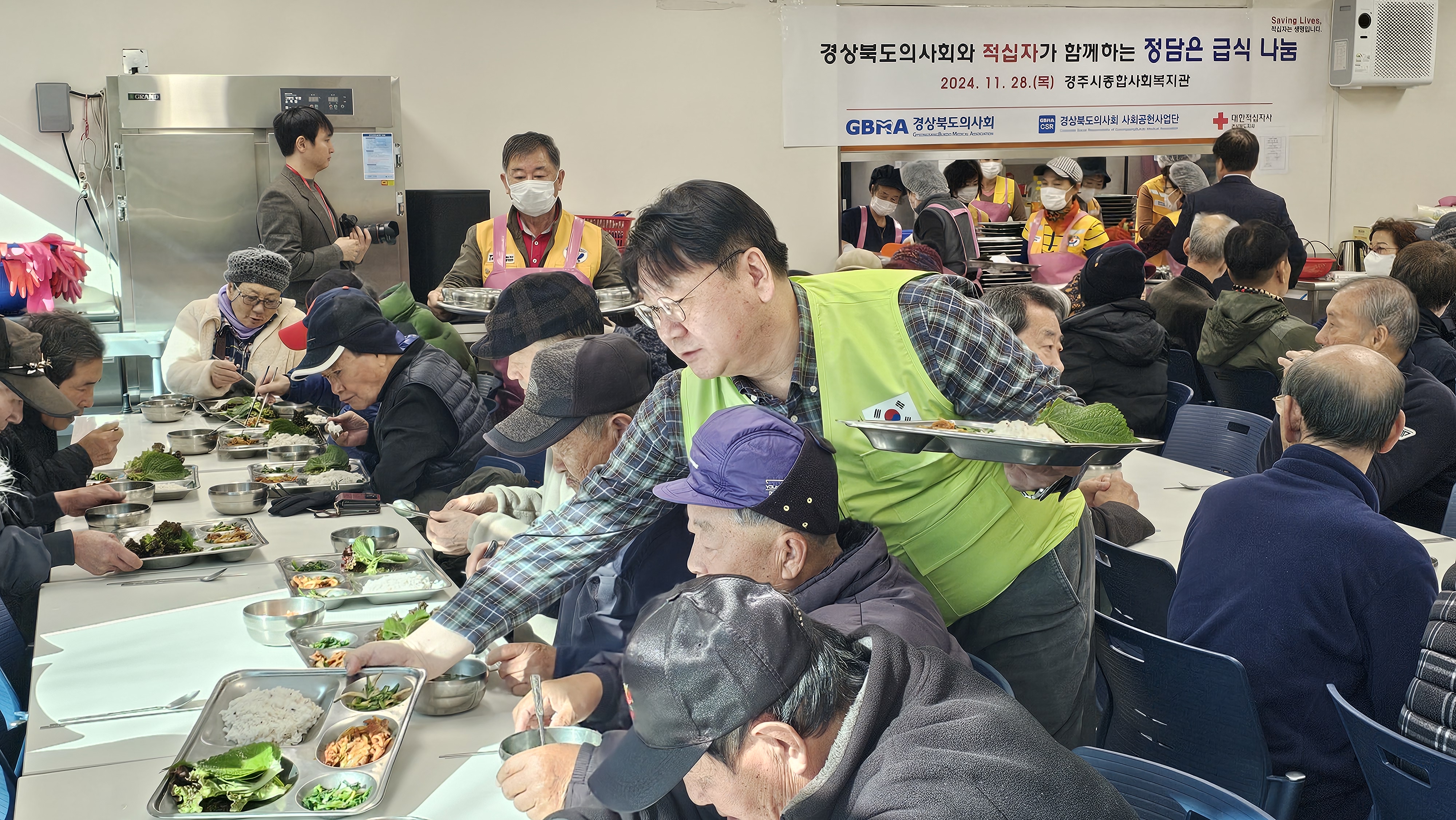 Á¡½É ³ª´©±â Çà»ç´Â °æ»óºÏµµÀÇ»çȸ¿¡¼ À̱æÈ£ ȸÀå°ú Á¤À¯¼± ¡¤ Á¤ÁÖÈ£ ºÎȸÀå , °ûµ¿À± ±âȹÀÌ»ç , ±èÁø¿ë ¹ýÁ¦ÀÌ»ç , Ȳ»ï¼º Á¤º¸À̻簡 °æÁÖ½ÃÀÇ»çȸ¿¡¼ Á¤µ¿¿ì ȸÀåÀÌ , ´ëÇÑÀû½ÊÀÚ»ç °æºÏÁö»ç¿¡¼ ±èÀç¿Õ ȸÀåÀ» ºñ·ÔÇÑ ºÀ»ç´Ü¿ø°ú °æÁֽú¸°Ç¼Ò Áøº´Ã¶ ¼ÒÀå µîÀÌ Âü°¡ÇÏ¿© Á÷Á¢ ¹è½ÄÀ» ÇÏ¸é¼ µû¶æÇÑ Á¤À» ³ª´©¾ú´Ù .